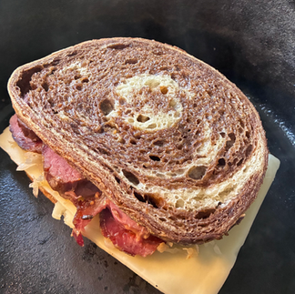 For the bread, marbled rye is traditional, but you can use your favorite rye or similar bread. Butter both sides of each slice generously. Place the bread slices in the skillet and toast them until golden brown on both sides. This adds a crispy texture and rich flavor to the sandwich.
