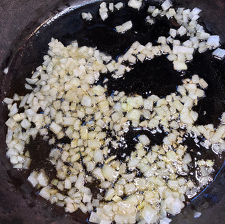 Heat olive oil in a large sauté pan over medium heat. Add the chopped onion and cook for 2 minutes until soft but not browned.