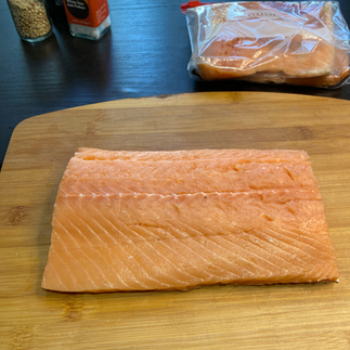 Regarding the salmon filets, you can cut them to the width of the salmon or trim off the bottom and cut them into squares. This is completely a matter of choice-